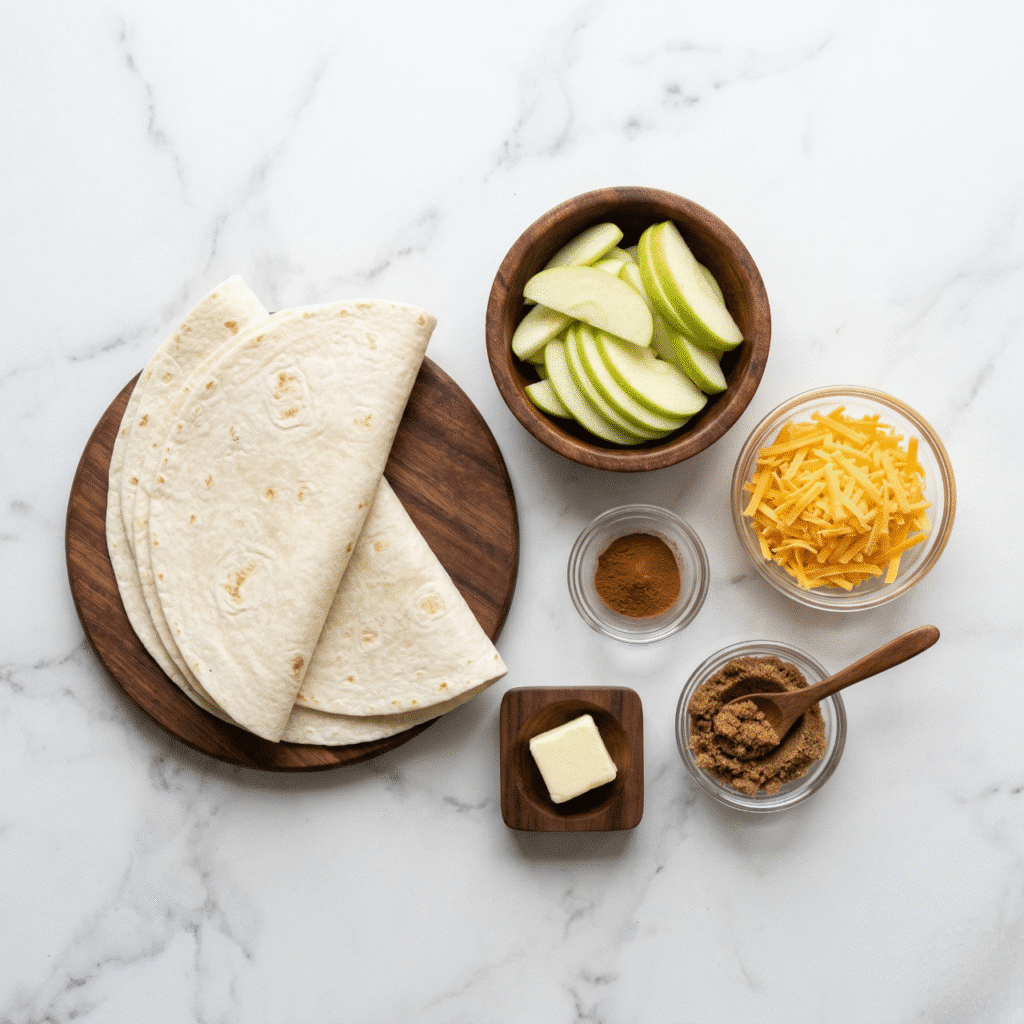 - Layer the apple mixture on top of the cheese, then add the remaining cheese before placing the second tortilla on top.