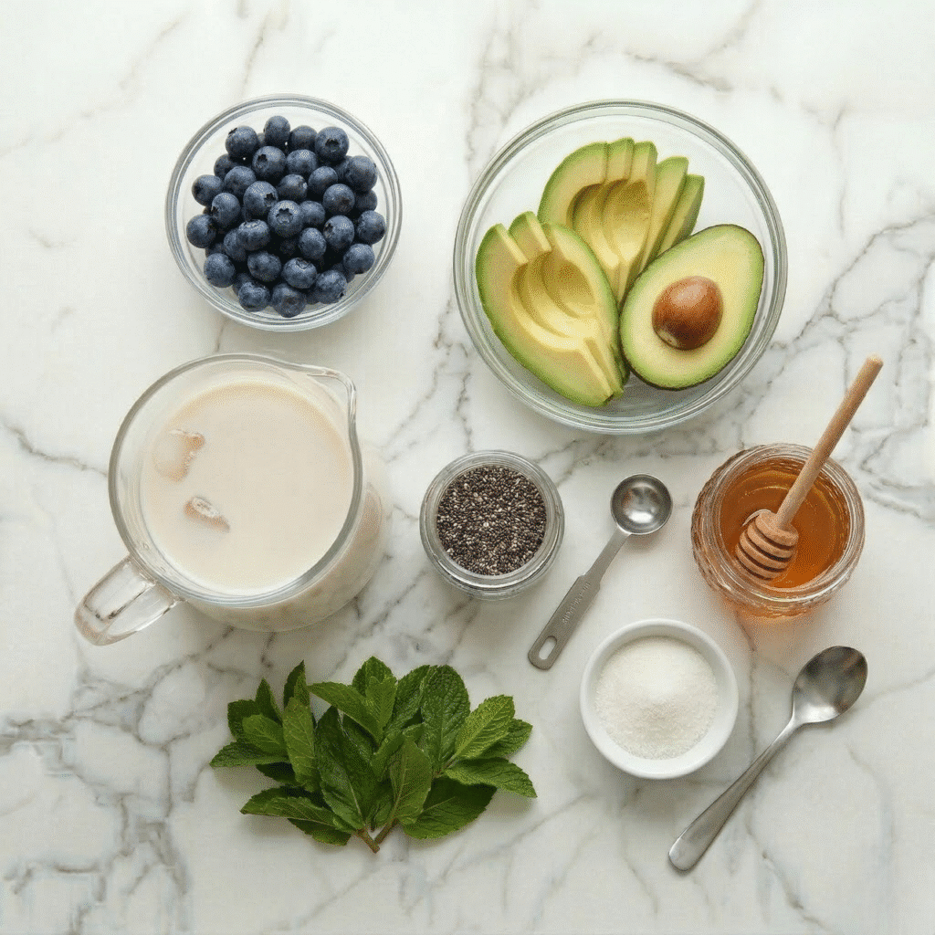 A refreshing and nutritious smoothie made with blueberries and avocado.