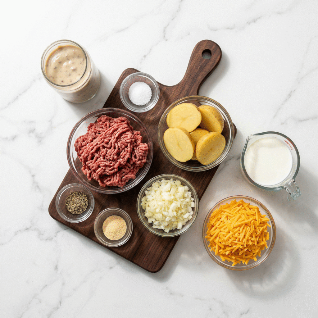 A hearty and delicious casserole featuring beef and potatoes, perfect for a family meal.