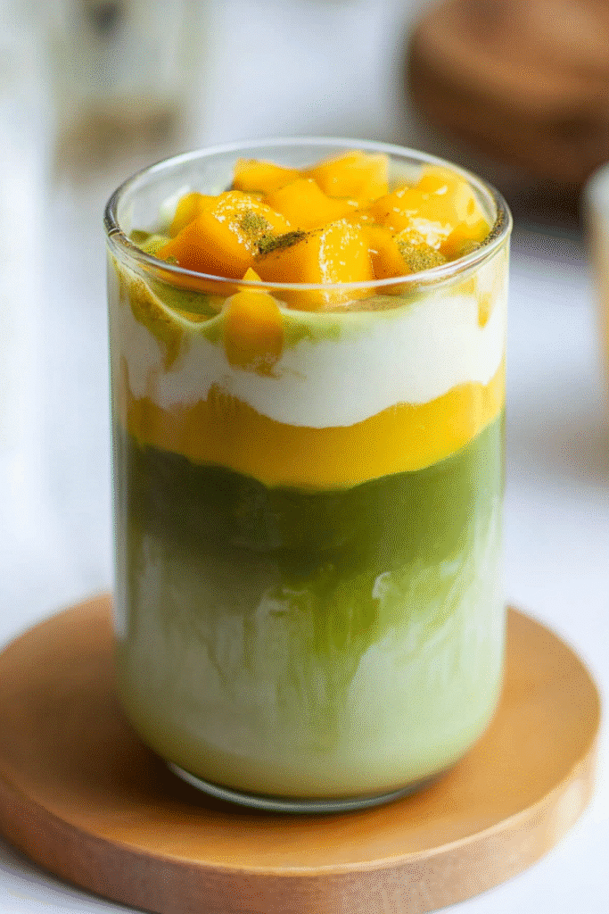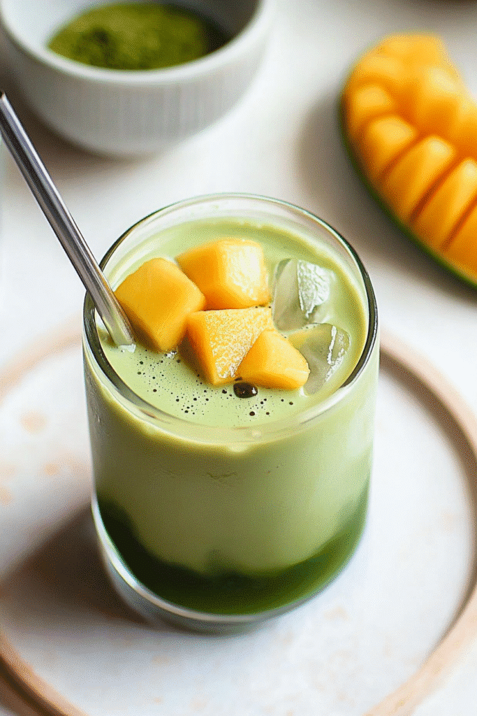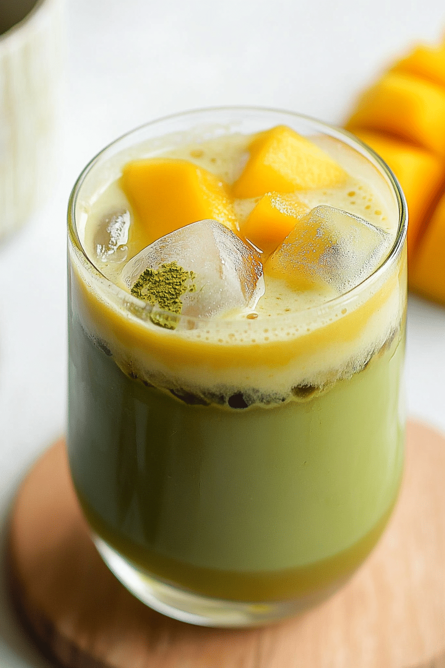 - Garnish with a slice of mango or a sprinkle of matcha powder if desired.