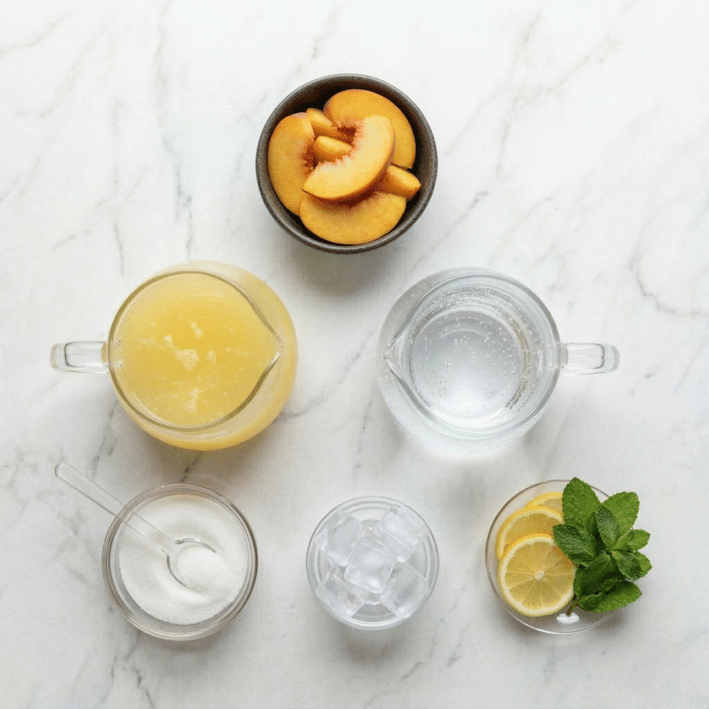 - 1 cup of freshly squeezed lemon juice – This adds a zesty tartness that perfectly balances the sweetness of the peaches.