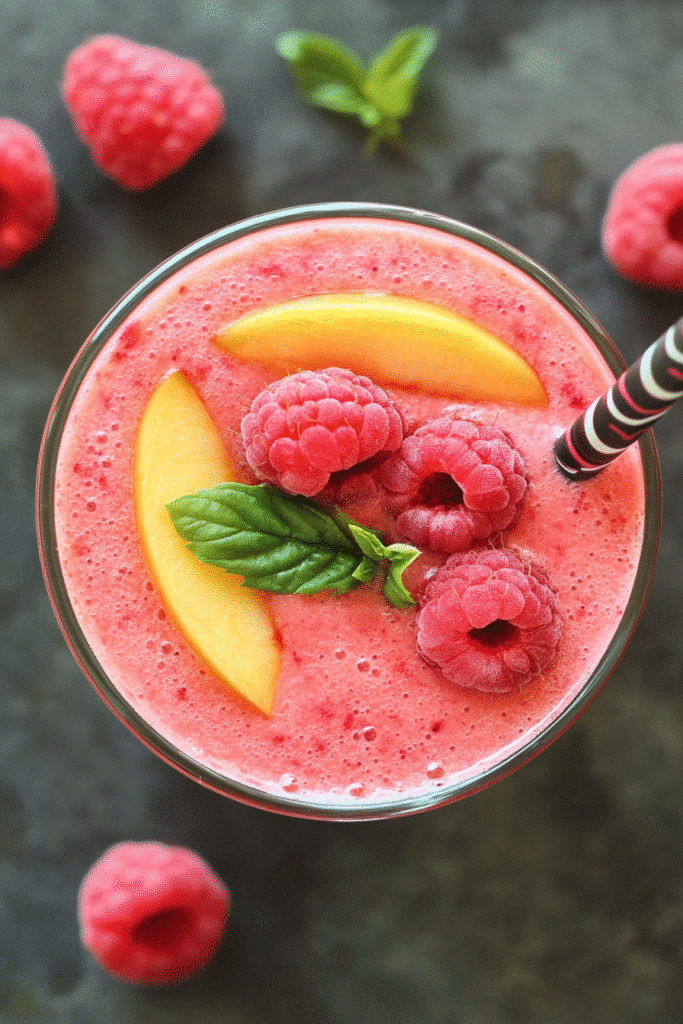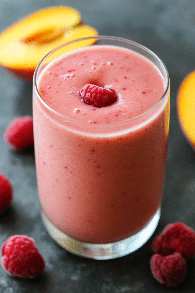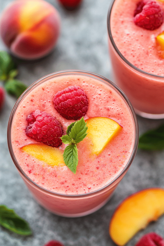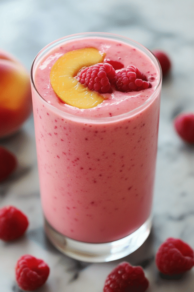 A refreshing and healthy smoothie recipe featuring the delightful flavors of raspberry and peach.