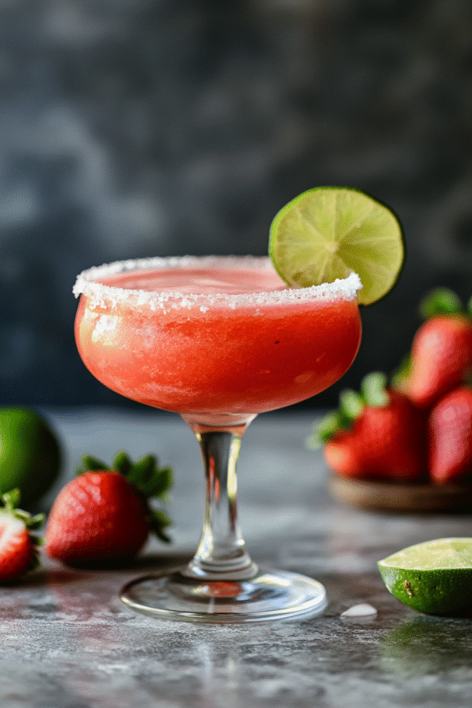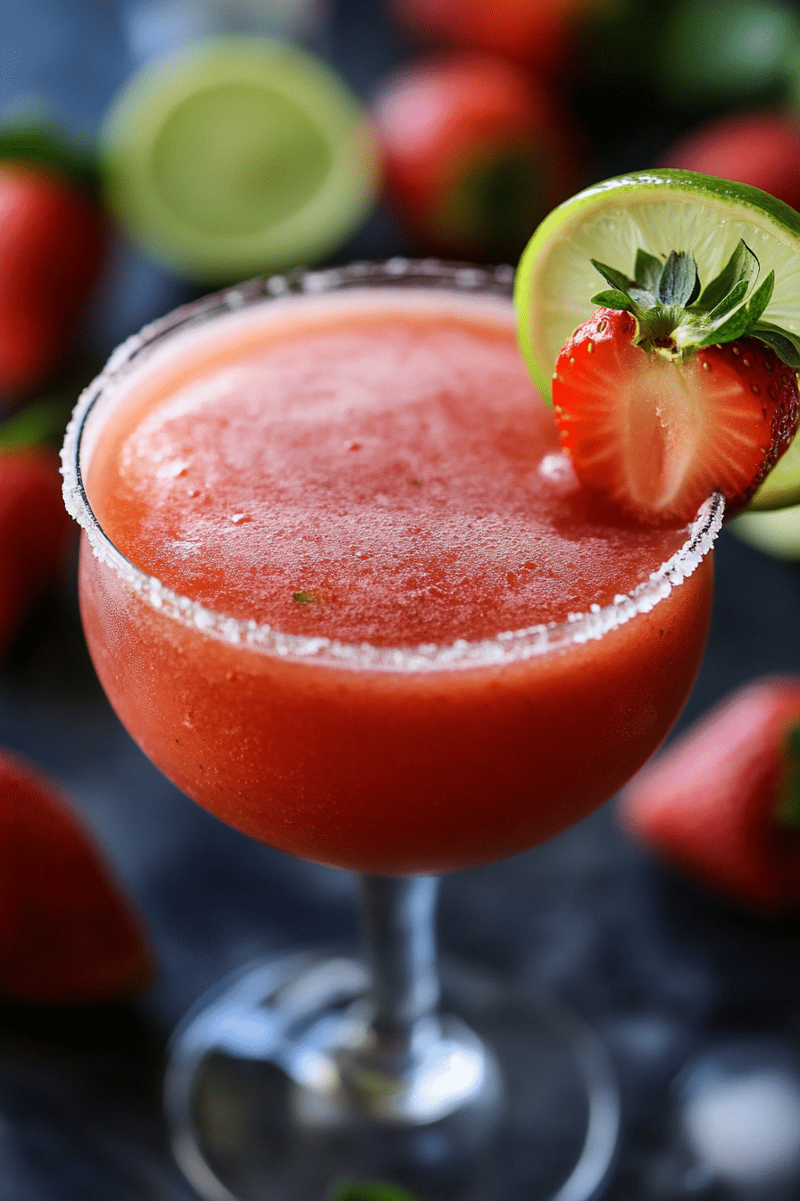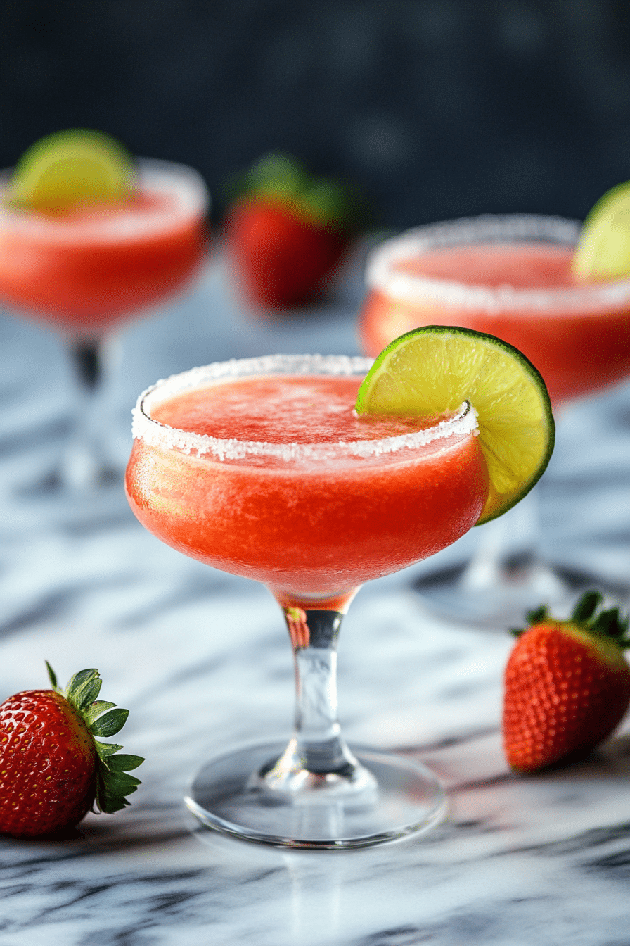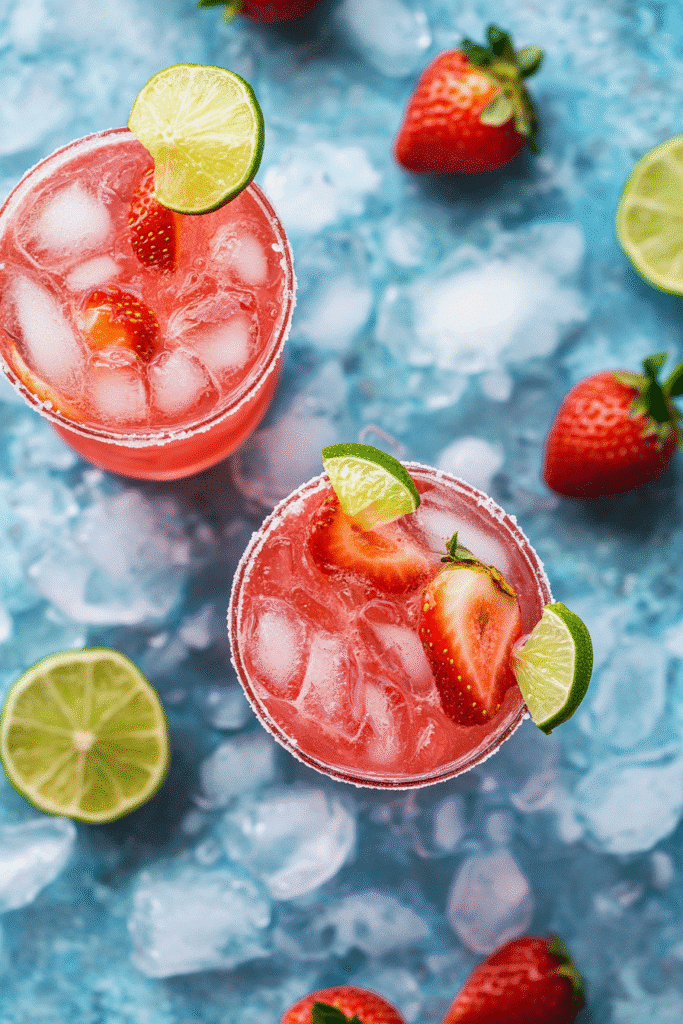 - Garnish with lime slices and whole strawberries, adding a pop of color and a hint of elegance.