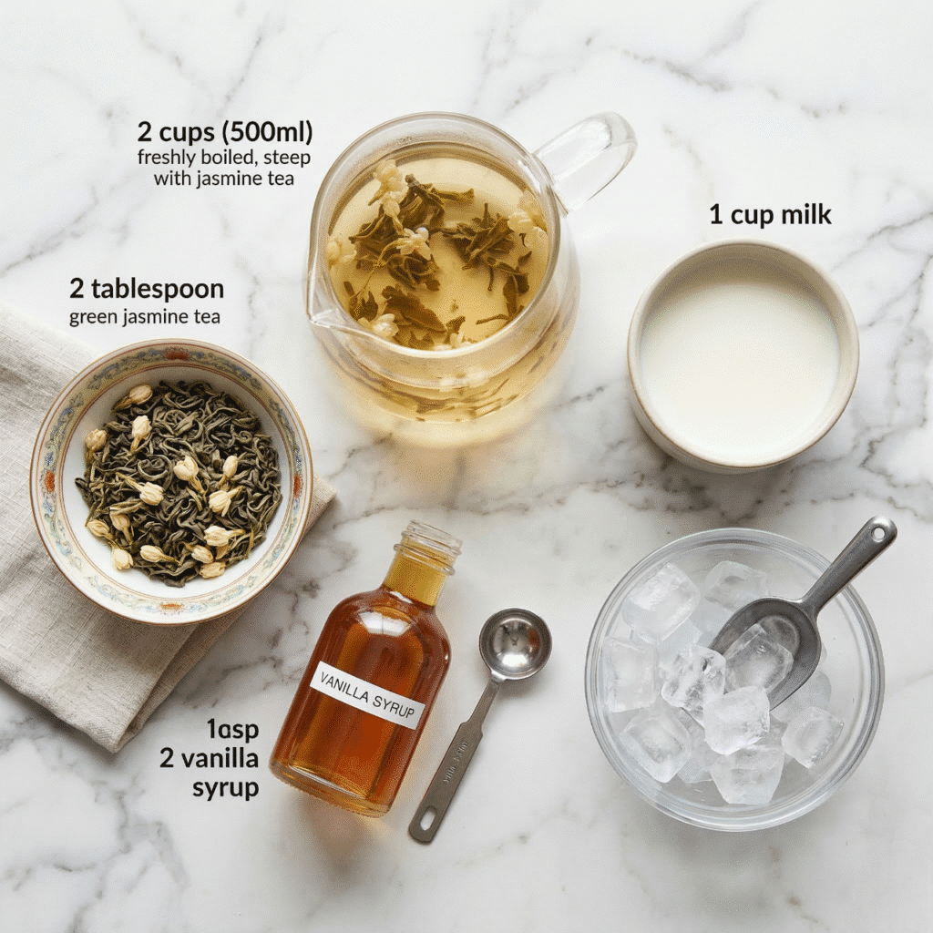 To create this soothing and flavorful Vanilla Jasmine Milk Tea, gather the following ingredients: